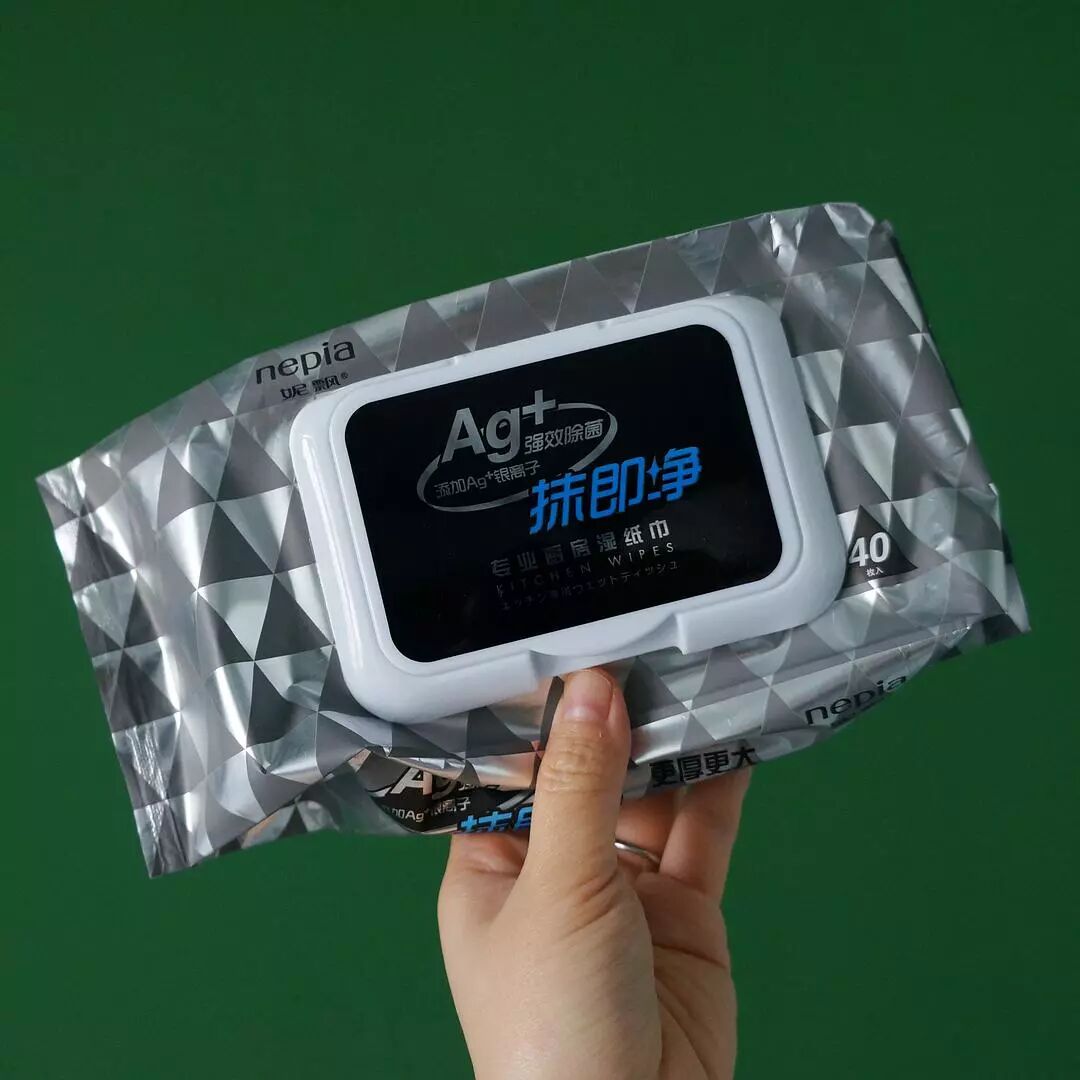 厨房里的物件儿,大多来自信赖的美食博主推荐。最早看见这款厨房湿巾是在@田螺姑娘 的好物名单里,由于添加了Ag+银离子,去油污效果好。每天洗完碗,抽1-2张擦擦,厨房始终光洁如新。