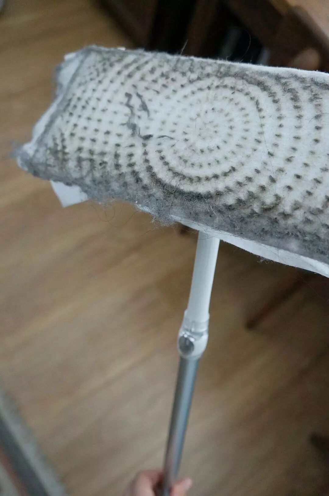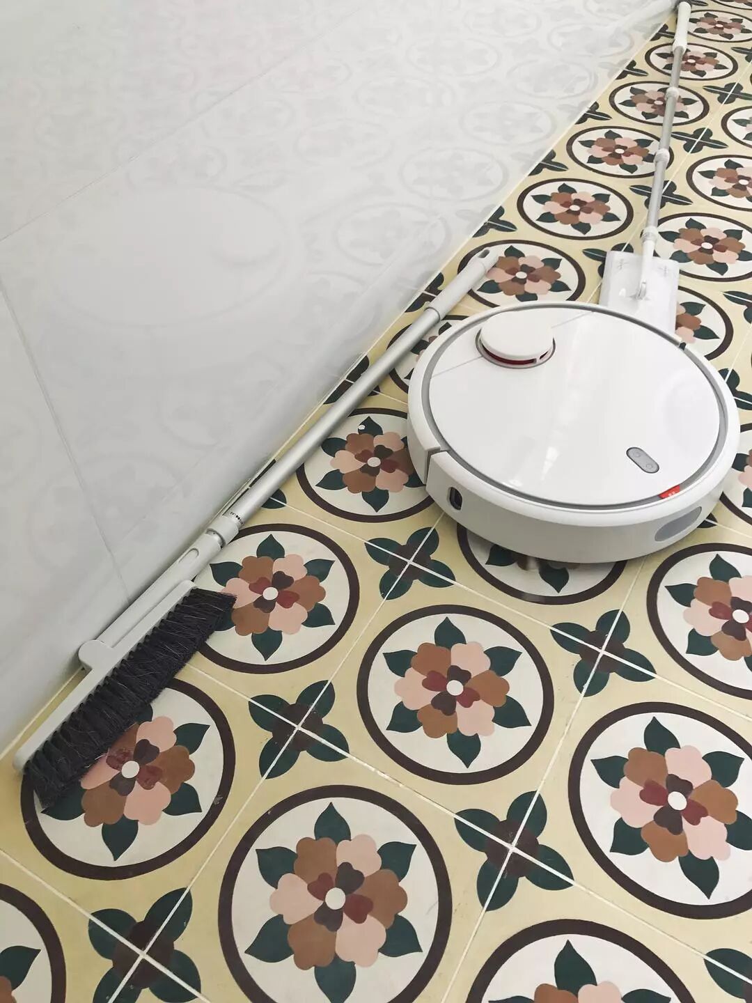 我最喜欢的清洁工具前三名。可是翻遍相册,发现只有这张靠在墙边被扫地机器人撞倒的照片。同行相轻,非常凄惨。