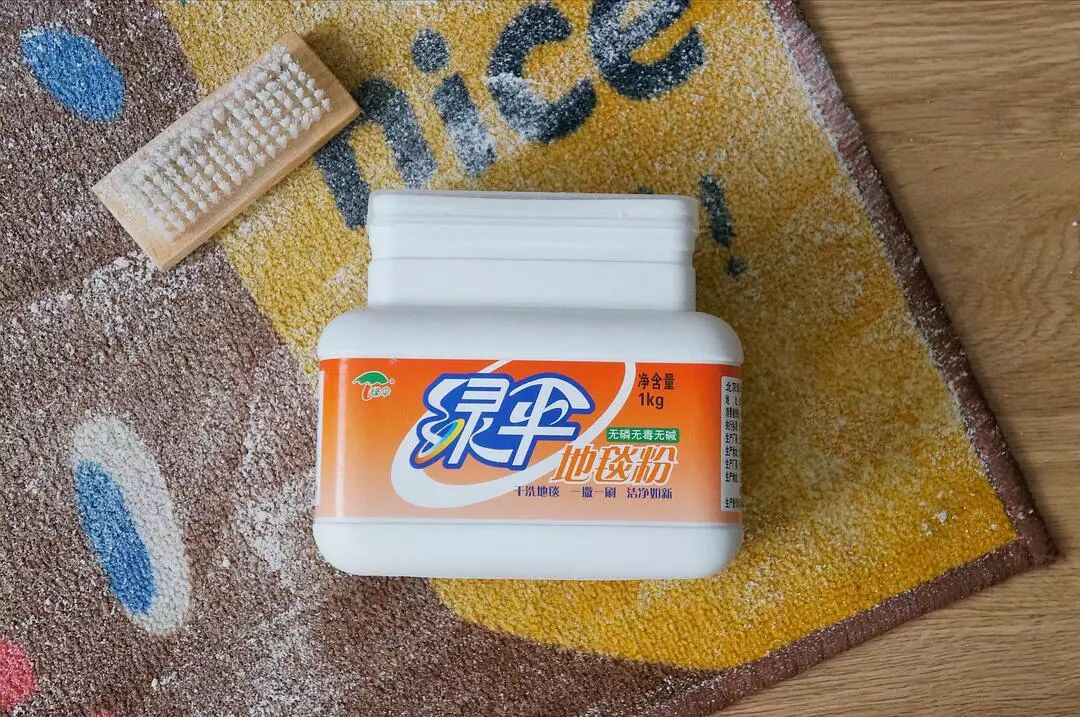 清洗方法:在地毯上均匀撒上粉末,用自带的小刷子刷刷刷(建议戴口罩),静置20分钟后,用吸尘器吸掉粉末即可。我家地毯没有遭遇过染色污渍,日常保养用这款足够了。如果不确定地毯的材质是否适用,可以在不显眼的角落先试一下。