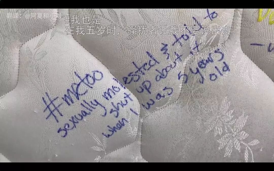 仅仅一天的工夫,这张床垫就被路人写满了留言。每一个MeToo,都在对Kate表示理解和支持。而那些曾经的受害者们写下MeToo时,他们也像Kate一样,不再责备自己,不再惴惴不安,真正放下了这件事。