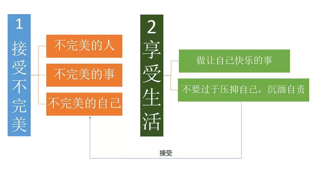 医生微笑着说:“去掉“尽量”两个字,这两个字还是你给自己的压力,对自己好一点吧,生活不完美,我不完美,你也不完美,你也有权力犯错,有权利去享受,有权利去快乐。”