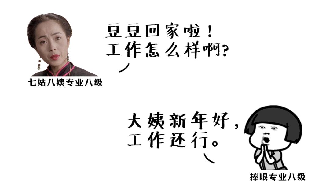 熟读并背诵以上捧哏话术,包您在七大姑八大姨面前对答如流,并在父母处获得“乖巧子女”称号!