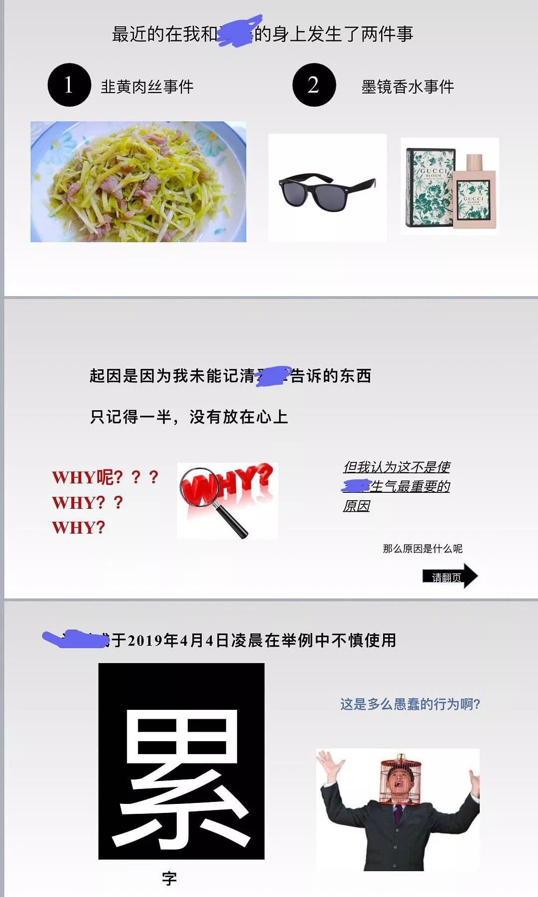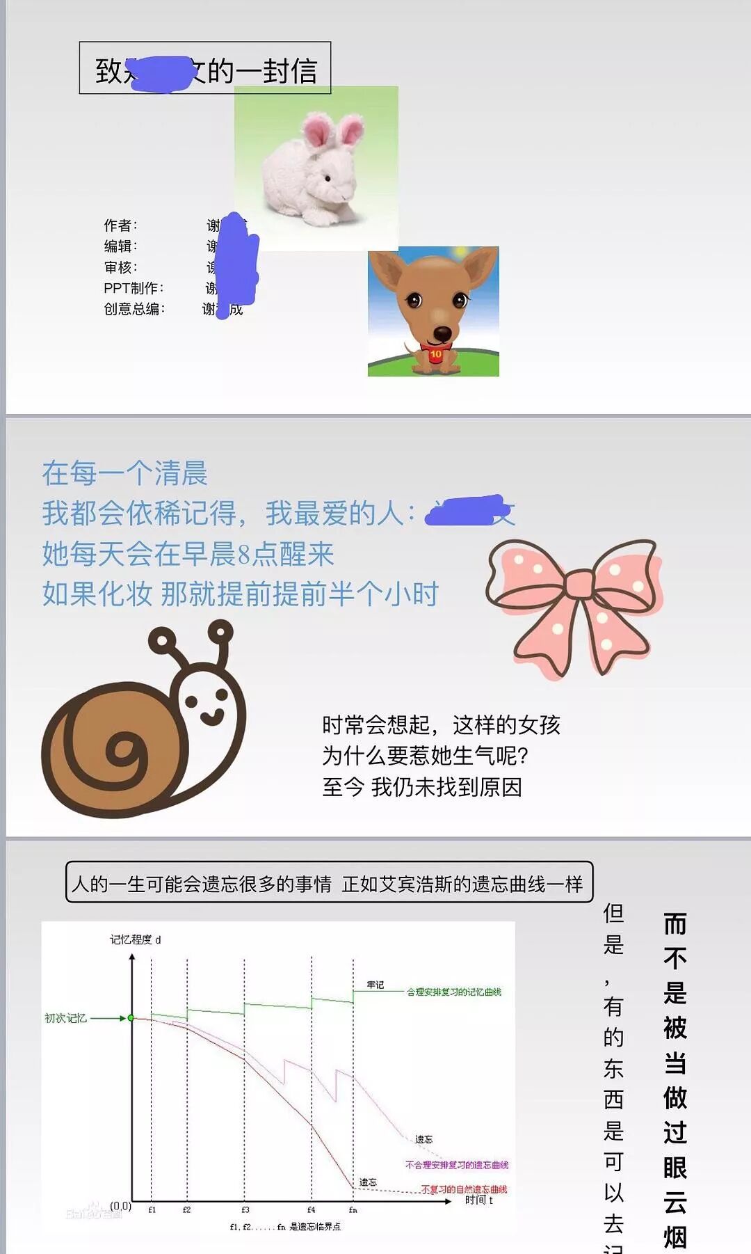 起因是一些我给她说过的小事他不记得了我当时就不开心,其实冷静下来想想自己也会忘记一些他说过的小事,大家平时工作都很忙,是很正常的,男朋友比我小,冷战了一天看到这个PPT真的想哭又想笑