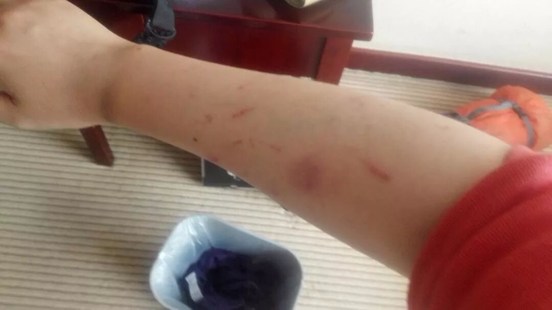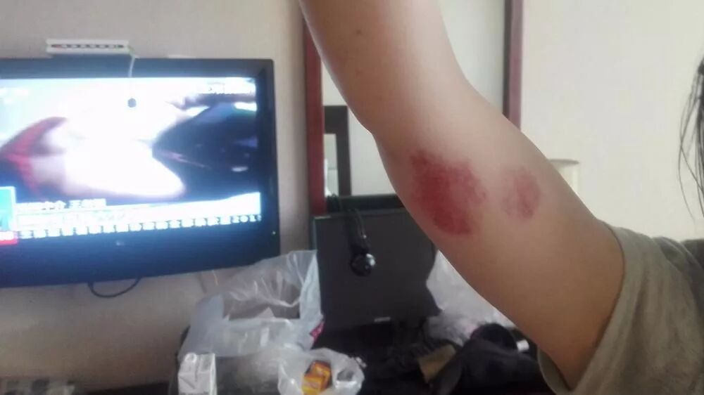 手臂和肩膀都有大块的淤青