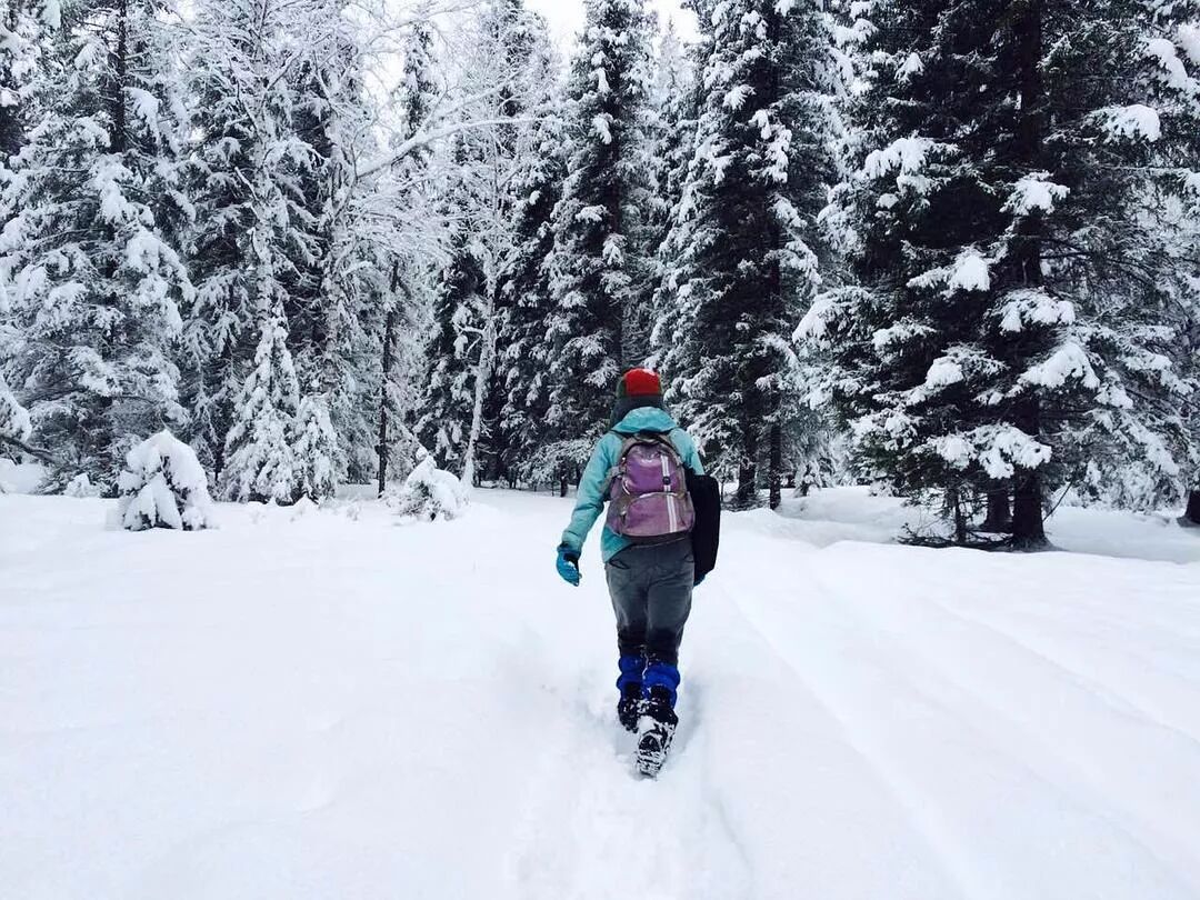 冬天的禾木,踩着厚厚的积雪上山