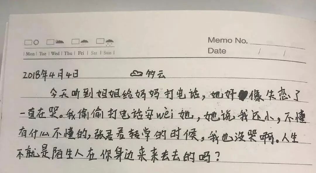 前些天看到的八岁小姑娘日记,觉得这段话说的我自愧不如。一大把年纪,还偶尔看不开人际关系的聚散。