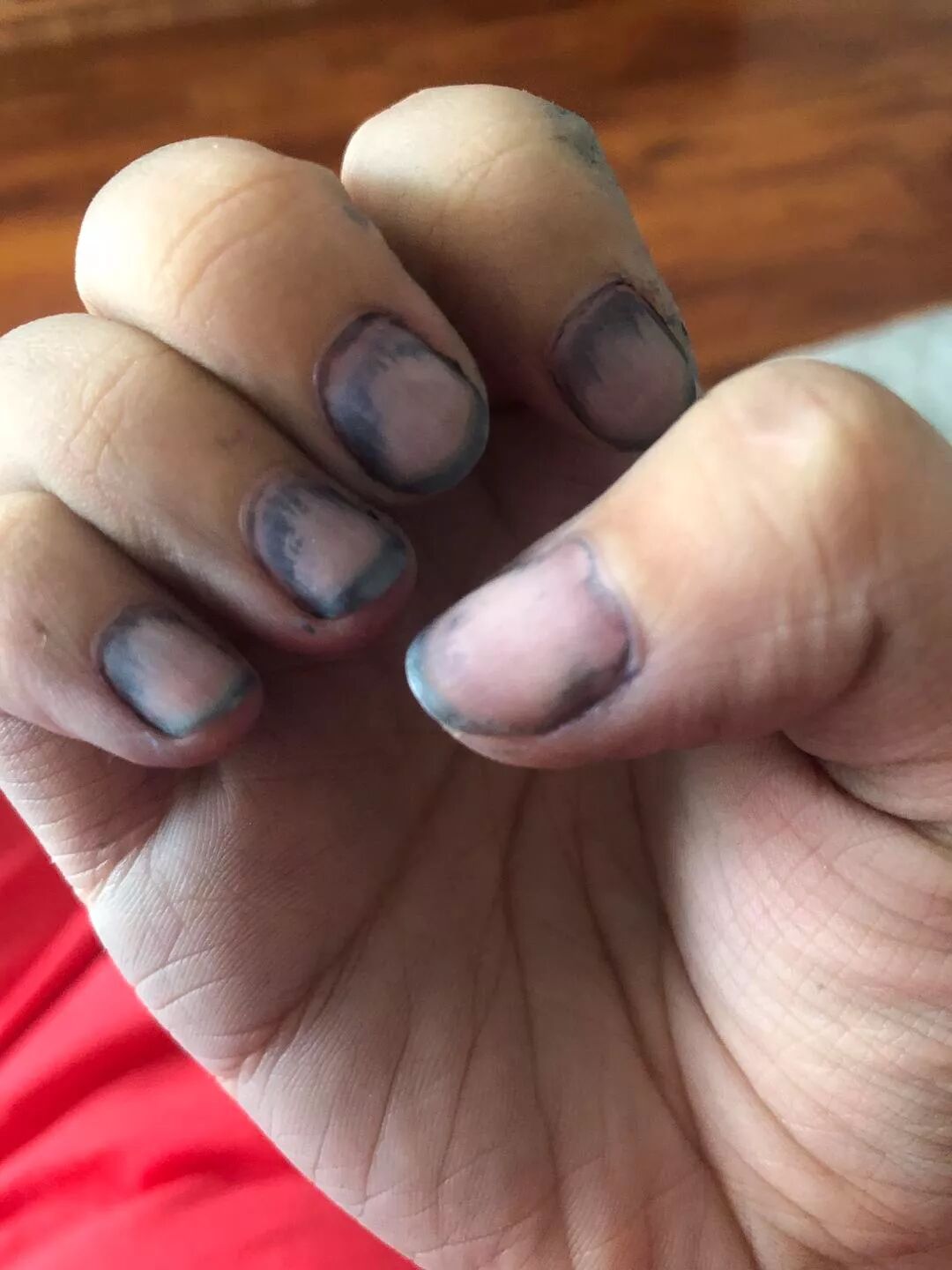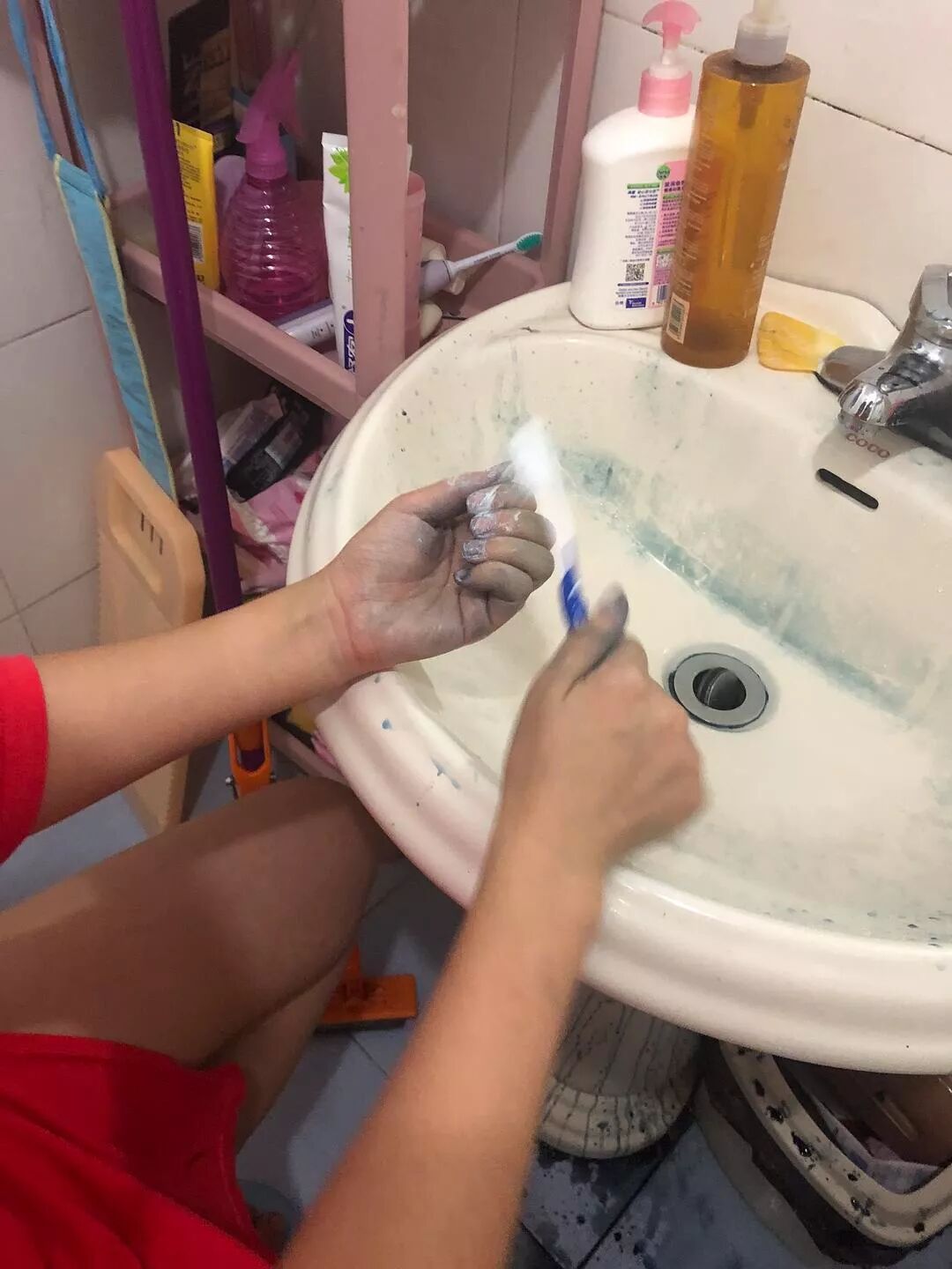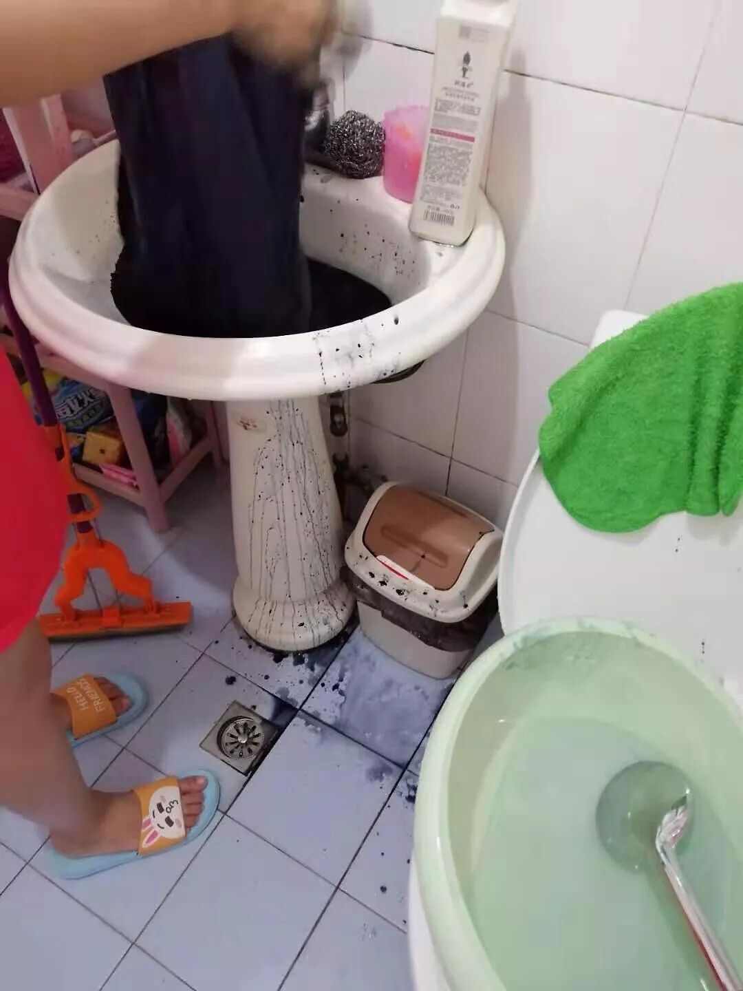 亲妈突发奇想去早市买了件25块钱的衣服,回来一沾水就… 老妈惊慌的叫我。结果就是图片的样子了。有什么方法能拯救这双手么?