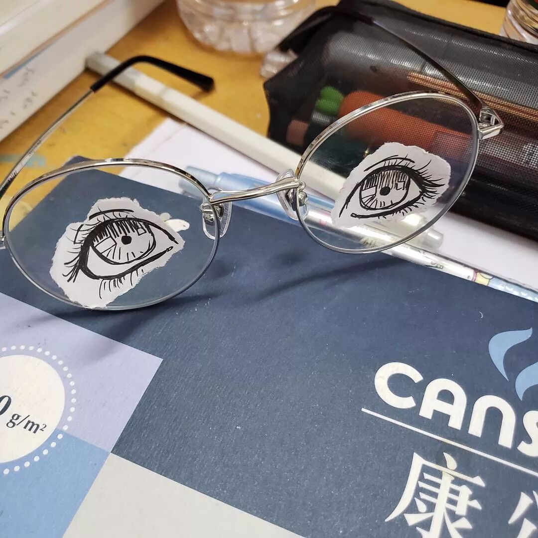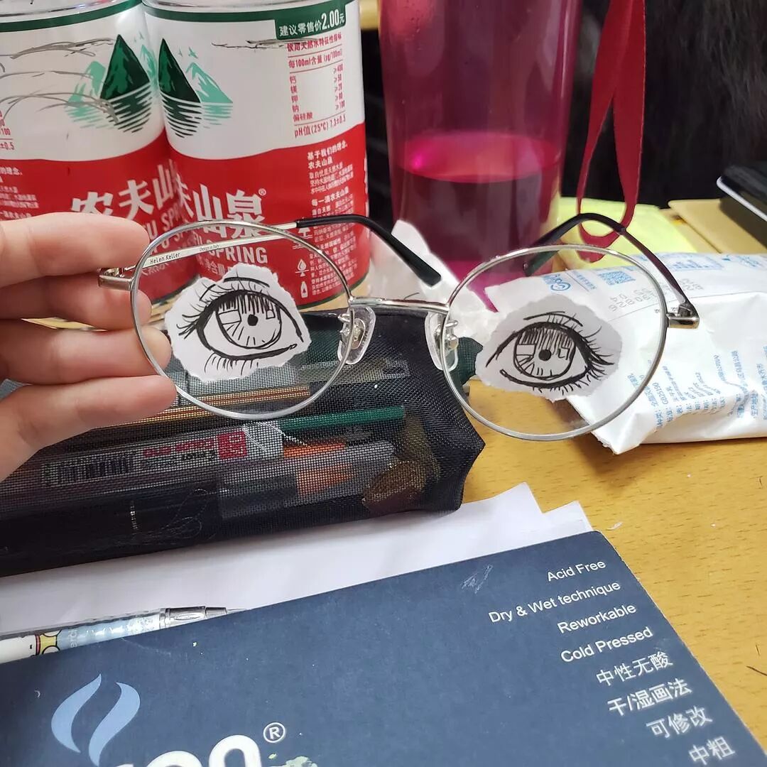我在上课的时候睡觉 下课起来发现我眼镜上好像粘了些什么东西挡住了我的视线 发现是我前桌干的🙃