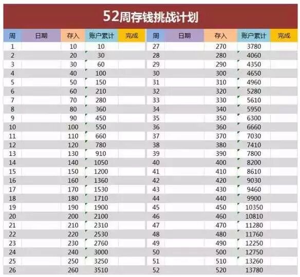 52周存钱法