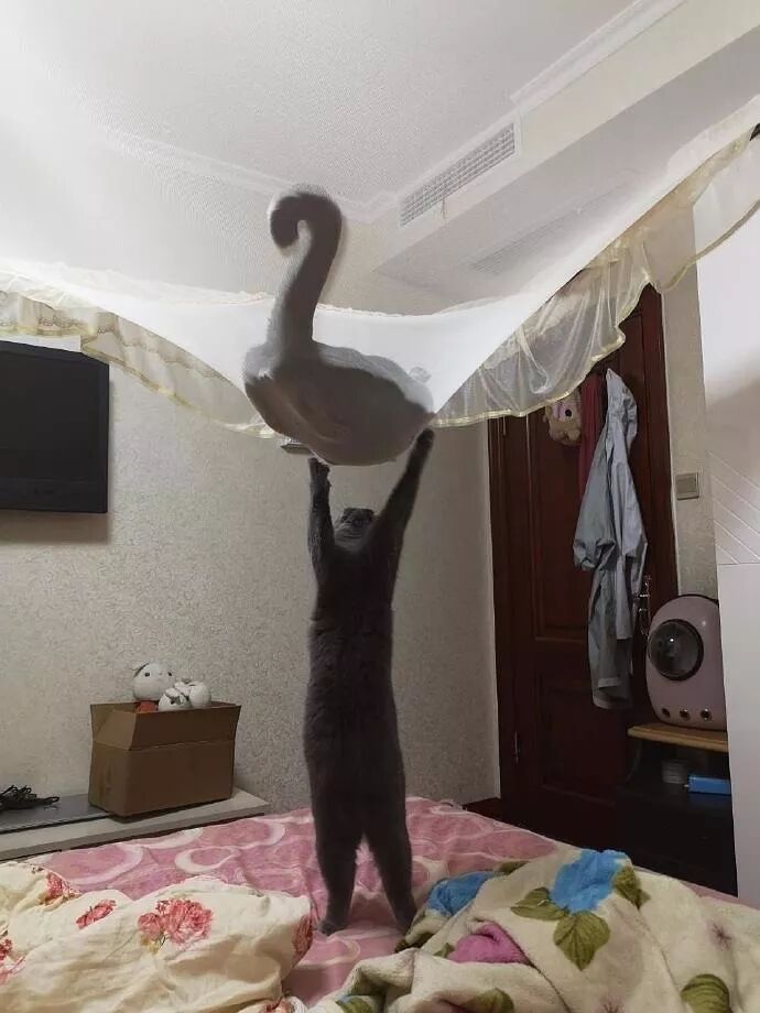 一只被皮筋打败的猫