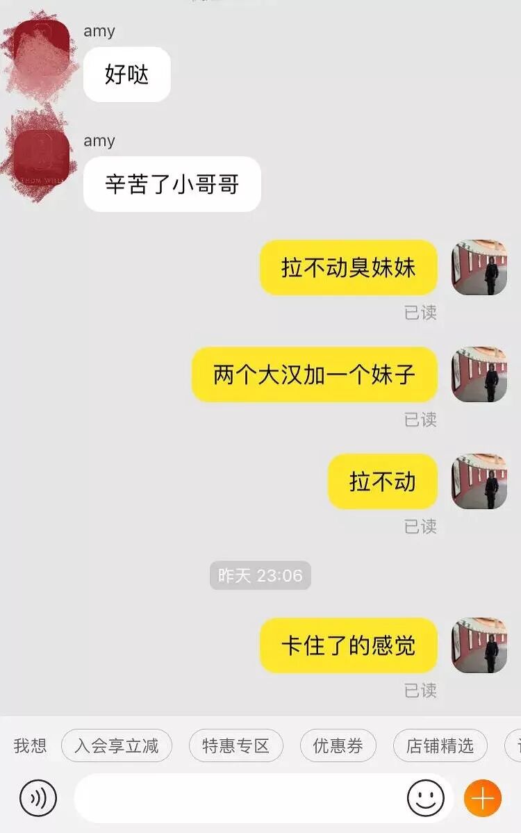 感觉今年双十一发货没去年那么积极,心心念念的鞋15号终于到了,晚上回家迫不及待试穿。拉上拉链,系上带子,准备走两步。“zi……”听声音就知道拉链很顺滑。上面鞋筒收的紧紧的,脚也抽不出来。我开始慌的一p。已经晚上11:35了,还让不让人睡了?这是想让我截肢的节奏啊!感谢熬夜加班的客服,帮我解决问题。由于这是一家主打男鞋的品牌,所以客服一直以为我是小哥哥😹😹😹![]()
