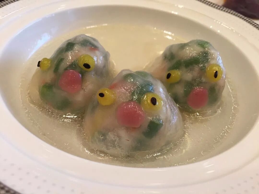 某次去喝早茶 看见菜单上有一个丑的有声有色的金鱼饺 于是我忍不住点了