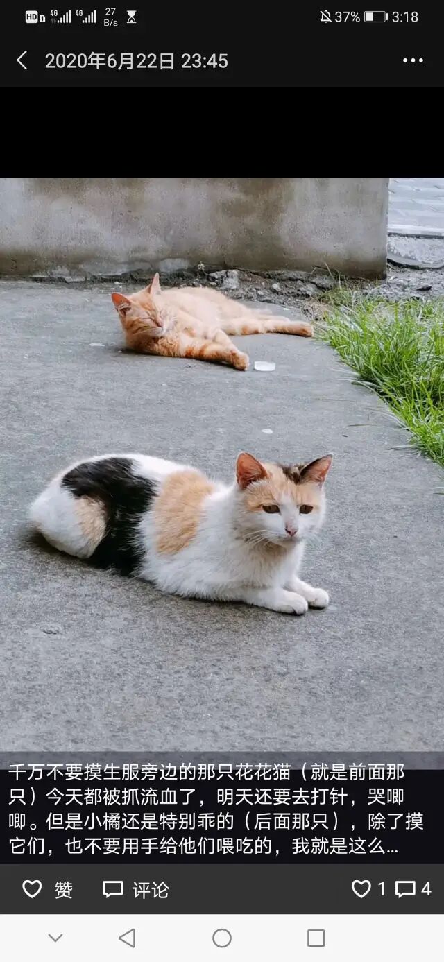 原标题:室友被猫抓后发朋友圈提醒大家不要去摸那只花猫,