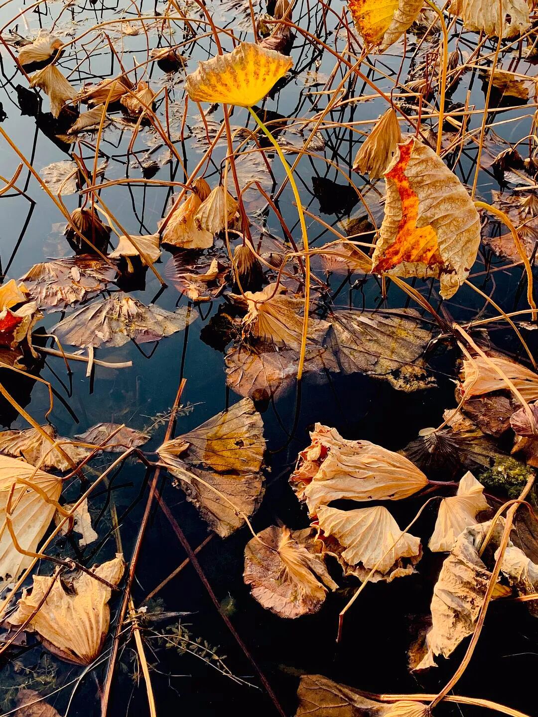 昨天散步时拍的。 “留得残荷听雨声。” 残荷还是美的,只是雨声已经很远了。