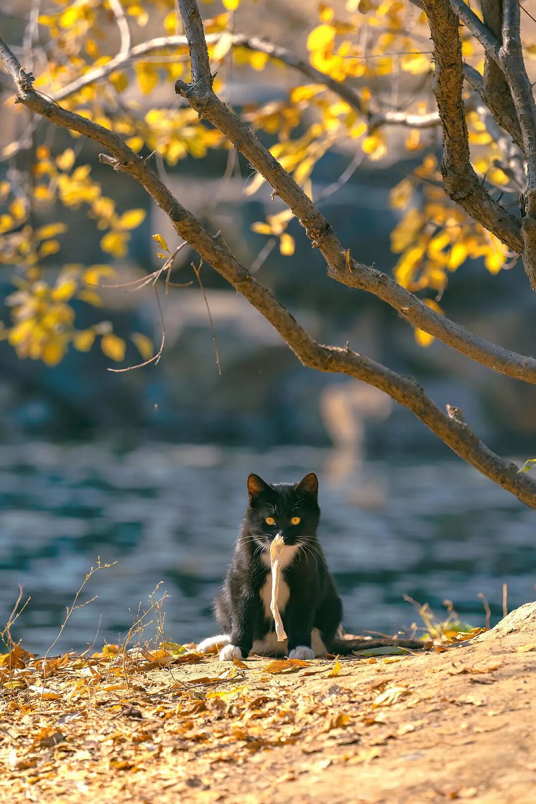 秋日艳阳下,小探长发现了地上的小纸条,如获至宝兴奋的玩起来,忽然间注意到这边正注视着它,于是警觉起来,但却忘记嘴上还粘着纸条,远远看去就像拉着长长的哈喇子,好有趣。