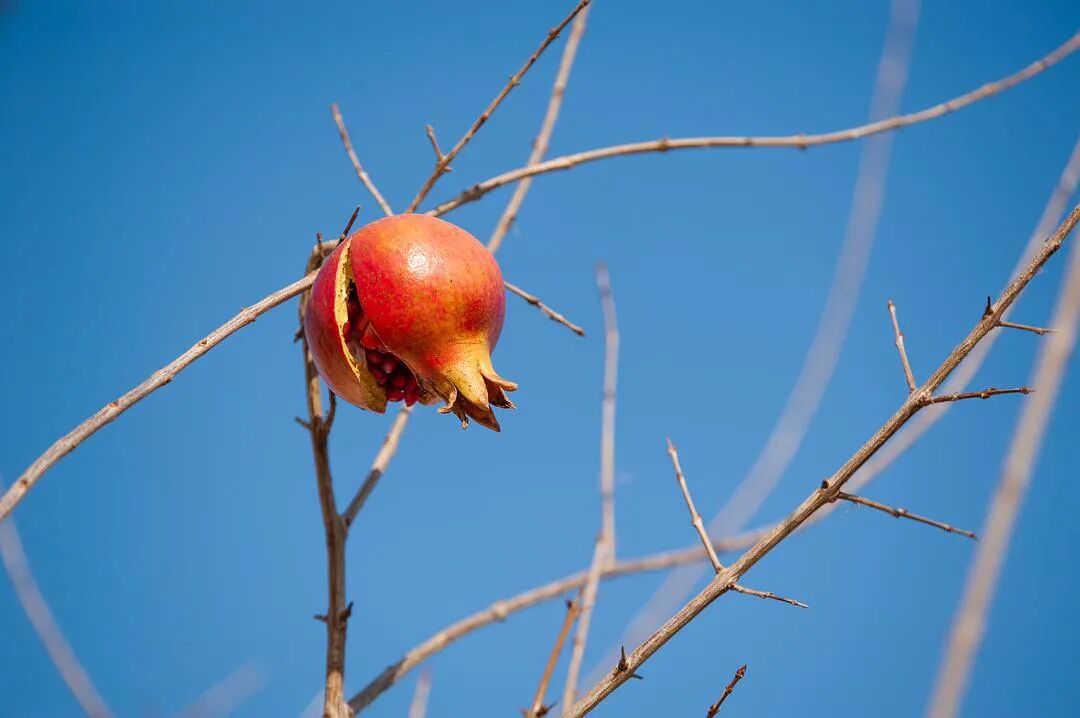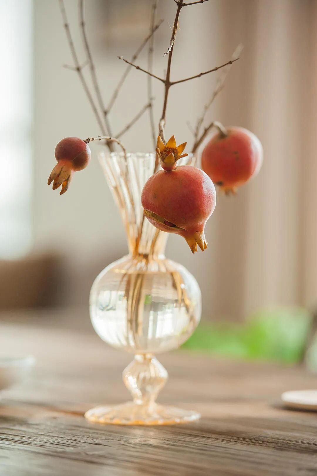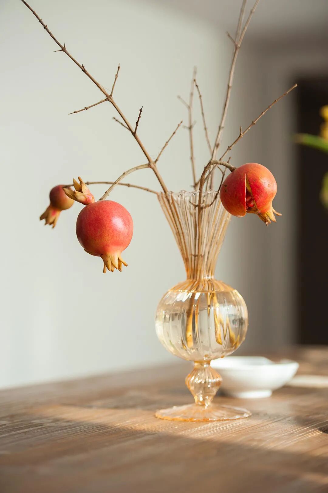 树叶都掉光了,就剩石榴还晃荡着,还裂开了嘴,扒拉一颗尝了尝,酸得掉眉毛,只好剪下来插瓶里。好歹是自己种的,也觉得好看。还有一个小小的,长得很周正,特可爱