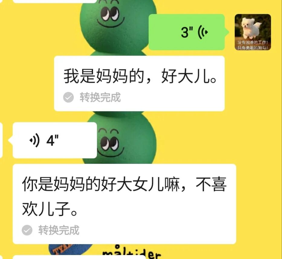 有一天我妈一回到家就和我说:今天看见两个小女孩,好像是一对吧,看起来真是赏心悦目啊!假如你找个女朋友妈也不反对,最好能找个不像你这种邋邋遢遢的,我感觉也挺好。我和她说,妈妈我不想生小孩,我也不想结婚。她说的话让我哭了:我完全支持你不生小孩,我理解那些让自己孩子生小孩的父母,因为有你让妈妈十分幸福,我希望你做妈妈是想让你也体会到这种幸福,但你要是不想生完全可以。可能这因为我妈从小在一个不重男轻女的家庭长大,姥爷是大学生,但是姥姥在十多岁前都没有名字,被家人安排结婚以后逃到城市里,两个人认识了,生了两个男孩,有第三个小孩时本来想打掉了,但是他们都相信一定是个女孩子,所以留下,变成了我妈妈。姥姥虽然没上过学,但是一直鼓励我读书、深造,在小区和别的同龄人聊天的时候,有人说,大学毕业赶紧找工作去,姥姥说:我们就愿意供她到博士,怎么啦!其实我妈的文化程度不高,大专毕业,但她有时候的思想又让我震惊又感动。