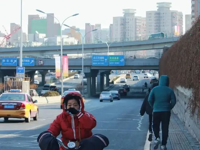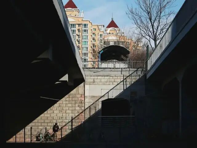 我的作息一如往常,七点半起床、洗漱、吃饭,八点半出门。只是今天我选择走路去公司,预计三个小时后能在楼下“打卡”。任性吗?其实并不。年前我和领导提了离职,今天开始休假,元宵会是正式离开的日子。“我不想干了”的想法变成“我不干了”的事实,花费了四个月。这大概是一件值得庆贺的事,得知我将离职,好友们流露出的羡慕多过不舍,羡慕我年轻,羡慕我自在,羡慕我有退路和退出的勇气。对于未来,我有憧憬也有担忧,但就当下而言我的知觉并不强烈,也许是因为还没到最后的日子,也许是我给自己设置了太多的缓冲器。搬到芍药居九个月,我几乎每天骑车上下班,路途中时常看到有趣的人和事,奈何平时疲于奔波,既没有时间也没有相机,任何场景只得匆匆一瞥,仓皇路过。于是,在“预备离职”的第一天,我决定完整地走一遍每天骑行的道路。早上拍照,照片可能不那么“好看”,下午写作,文章可能不那么“动人”,但是没关系,我今日做的一切都是为了自己。不知多年后午夜梦回,我是否会想起2020年芍药居到三里屯的路上,总是有一个骑着黄色共享单车的小孩,小腿蹬得飞快,在车流中穿梭,一溜烟的功夫便没影儿了。八点半之前,我会离开家,走出小区的第一件事便是寻找共享单车。运气好的时候出门就能遇见,运气不好得走十来分钟,在芍药居地铁站的天桥下,解锁当天的“缘分”小车。八点多小区门口人头攒动,打工人忙着通勤,老年人忙着买菜,城市已然苏醒。走五分钟会路过一个小广场,晨练的人在这里拉伸,大都是老年人,动作慢慢悠悠,时不时东张西望,拉拉家常。我只能瞥一眼他们的闲适便继续赶路,像是圈里的羊,有一支看不见的鞭子,挥舞着让我前进,前进。芍药居是个很热闹的地铁站,因其周遭房租相对低廉,交通也比较便利,是北京性价比较高的住宅区,很多北漂的人选择在这里“安家”。我很少坐地铁,每每路过天桥,看到头上泱泱的人群,会有喘不过气的感觉。所以我选择骑车,骑车能看到广阔的天地。骑过地铁站旁的高架桥时我的心情总是很愉悦,因为只要天气不是太差,就能看得很远很远。骑过高架桥,是一段长长的下行道路,两旁有水泥围墙,围墙那边是一个小型城市公园。平时骑车看不到公园内的场景,今天既然走路,我便好好打量了一番。我没有时间,我得赶路。早晨的下行道只有一条车道,总是堵车,这时便显出骑行的优势,我脚下生风,轻松超过一辆又一辆小轿车。直到遇见光熙门地铁站外的小坡,有点陡,得深吸几口气才能越过。越过小坡,便是一条长长的倒U型下坡路,每回骑到这一段我都幻想自己是个帅气的机车少女,车技高超,流畅无比。我就是U型坡之王,这条路的一切都属于我,包括对面树尖上的鸟窝,我盯你一整个冬天了!骄傲不长,转过弯便是最冷也是最危险的路段——下穿隧道。数不清的小车、公交车、等公交的人,在隧道中交汇。车声轰鸣,隧道的构造又加强了噪音,耳机里的音乐再大,到了这里也会被吞噬。偶尔被公交挡住去路,我放慢车速,目光会和某个路边等公交的人交汇,往往疲惫无神。但其实下穿隧道的光影很有趣,不晓得有多少人注意到过呢。![]()