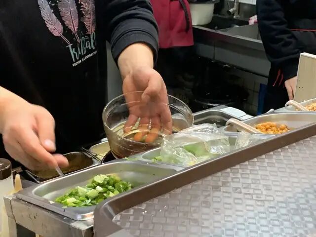 到地方了,我说“要一份香菇鸡丝拌面” 并鼓起勇气掏出圆形的保鲜盒,问“我可以装这里面吗?”。收银员小姐姐说,“可以”。终于迈出了第一步!然后我继续说,“不要筷子喔”。“好”。面好了,小姐姐把圆碗放在平时打包用的塑料袋上,在盖盖子,我又说“不要塑料袋”,她一惊,然后我就把我的碗放到手拎袋里,兴冲冲地走了。回到工位上,开始享用,感觉比以前打的都好吃!更感觉是自己又爱地球母亲进了一步而开心!毕竟节省一双一次性筷子,一个塑料包装盒,一个塑料袋子。这就是我第一次拿碗打饭的经历,感觉不错,后面有需要打包的时候,也会尽可能拿碗去😄,哪怕会让别人侧目,我是在做正确的事呀