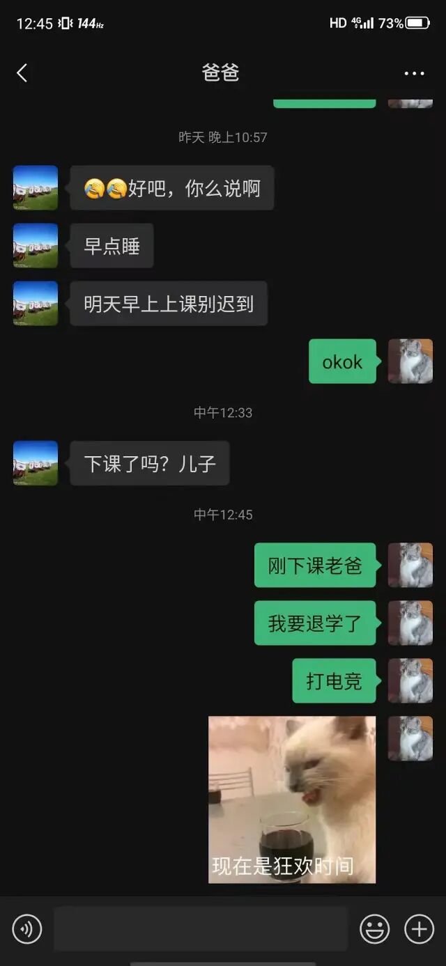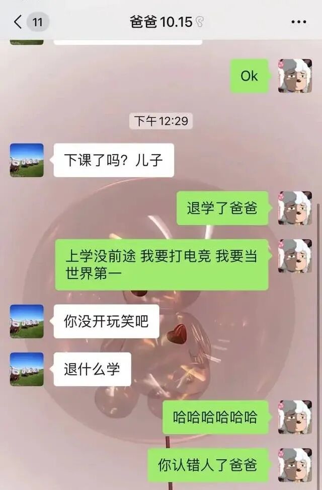 他们的上一条对爸爸的回复都是OK哈哈哈