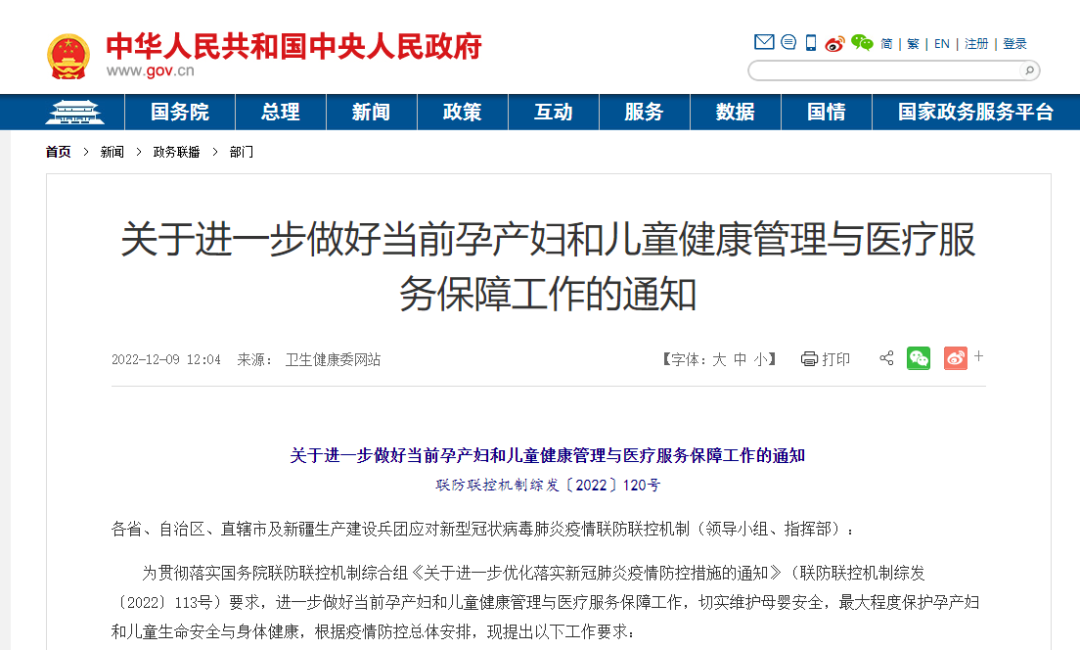 《关于进一步做好当前孕产妇和儿童健康管理与医疗服务保障工作的通知》