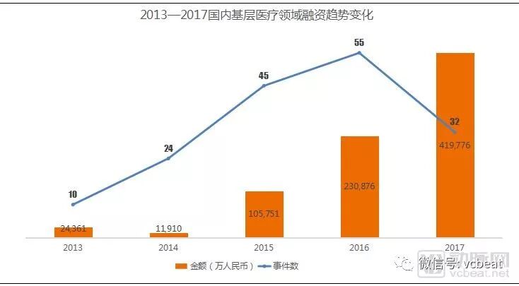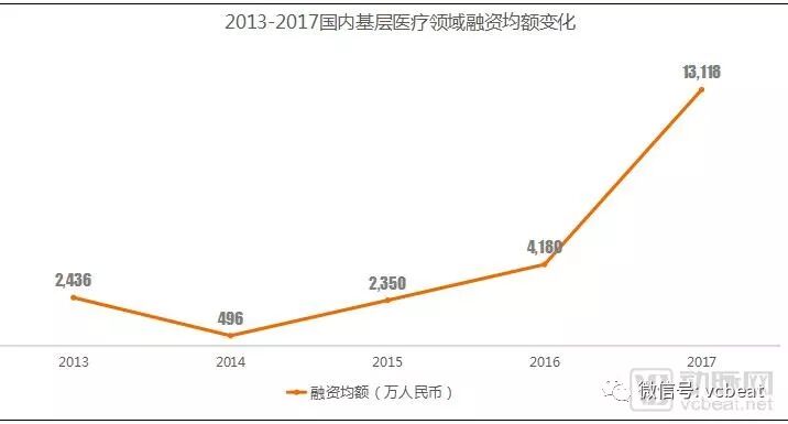 2013至2017年期间,国内基层医疗领域融资均额整体呈上升趋势,这是行业趋于成熟及资本加码的缘故。