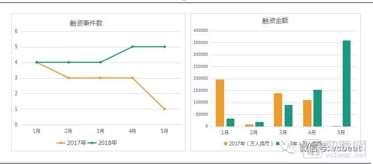 2018年1-5月国内外基层医疗融资事件数与融资金额对比