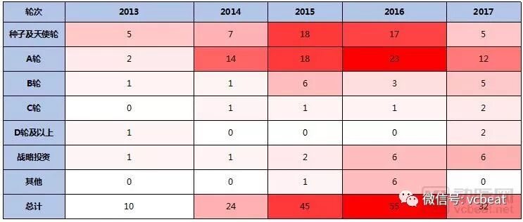 分析历年融资轮次分布,我们发现,2013年至2017年期间,国内基层医疗领域融资总体向成熟方向移动。