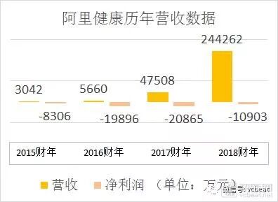 可以看到,阿里健康营收增长速度很快,从2015财年的3042万元增长至2018财年的24.43亿元,亏损亦在收窄。