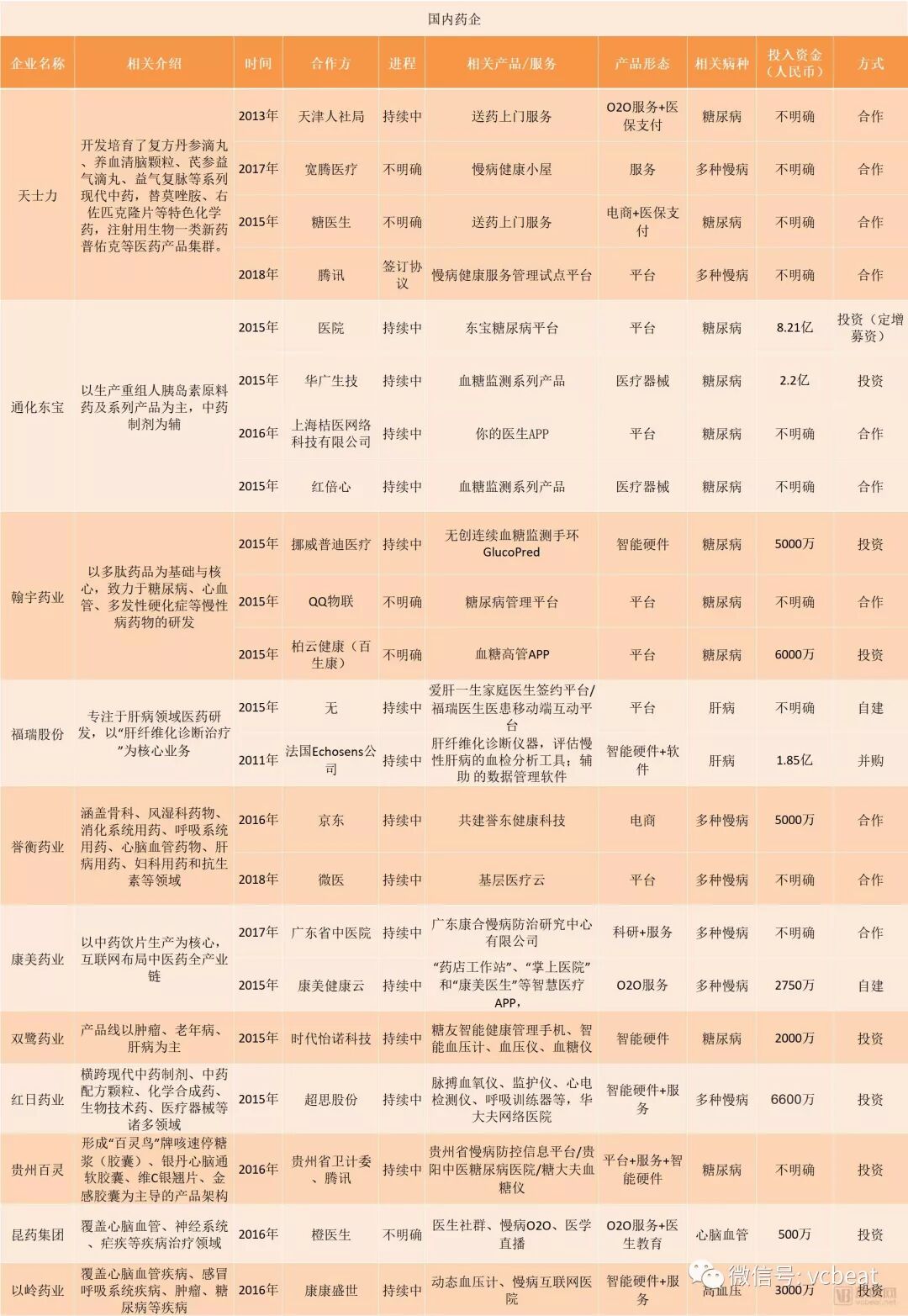 以下,动脉网统计了11家国内上市医药企业和7家跨国药企在慢病服务方面的布局,由于是通过公开资料及上市公司年报搜集,仅列举典型合作项目。