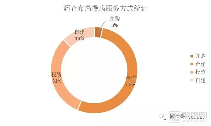 从图4中可以看出,医药企业布局慢病服务的方式中,有50%是以合作的方式进行,这与药企自己进行慢病项目大多折戟不无关系,在2015年底就传出诺和诺德解散了全国所有教育专员,放弃线下患者教育的模式。