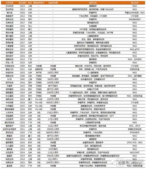 国内的液体活检行业也和国外一样打得火热。既有像华大基因,贝瑞和康这样的上市集团,又有大量创业公司加入。技术层面上,大多围绕着NGS(二代测序)技术对CTCs和ctDNA进行序列比对,用于无创产前,肿瘤预防或者用药指导。这里选取几家比较有代表性的公司进行简单的介绍。