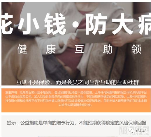 活下来的水滴互助、轻松互助、众托帮等所剩无几的几家平台,立即做起了规定动作。各家企业根据整改措施要求,按照保监会文件中“明确平台性质”的要求,在官网和微信公众号首页向公众明确声名“互助计划不是保险”、“加入互助计划是单向的捐赠或捐助行为,不能预期获得确定的风险保障”等内容。