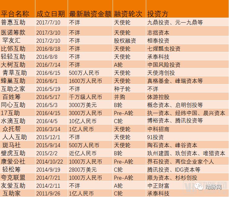获得过融资的网络互助平台盘点(数据来源:天眼查)
