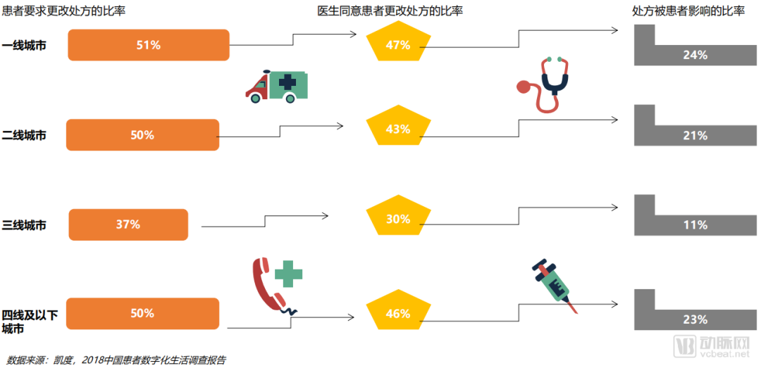 随着患者们从数字平台上获得越来越多的信息,他们也开始变得更积极地表达自己的就医意愿,医生与患者共同决定治疗方案的模式渐渐浮出水面,而中国是世界上这个模式最常见的国家。在风险较低的发烧和感冒的治疗中,医生甚至可能完全听从患者的主张。