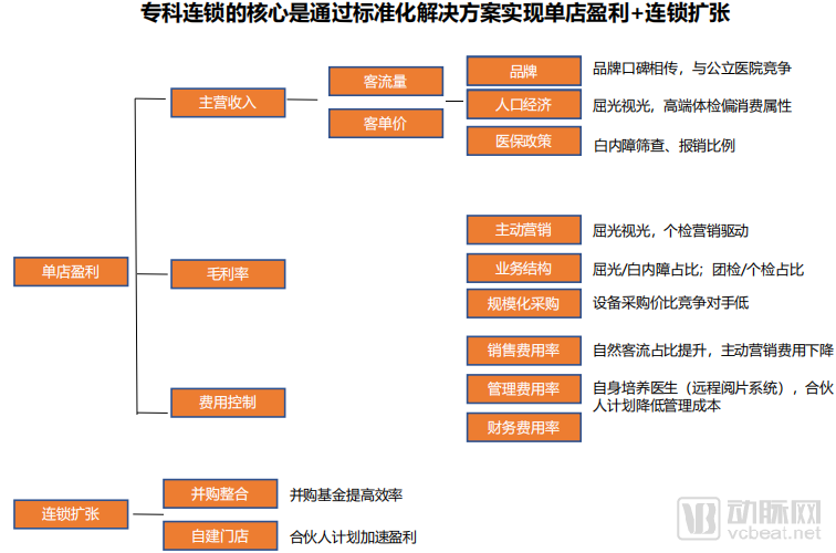 基于标准化解决方案的专科连锁开始崛起。尤其在眼科、口腔、体检等行业中,具有代表性的行业龙头凸显,通过标准化的解决方案实现从单店盈利到连锁扩张的规模化发展路径。