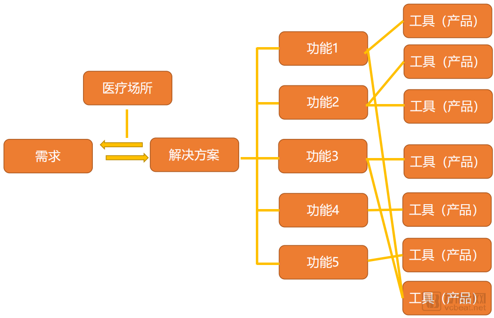 在医疗行业,我们将患者需求分为治疗需求、健康维持需求、“更好需求”,这些需求在以医疗机构为主的医疗场所被满足,这些医疗机构通过使用包括医生+医疗功能的器具为一体的解决方案满足患者需求;产业研究便是挖掘这套解决方案背后的功能构成及企业情况,通过长时间跟踪,洞察行业变化趋势。
