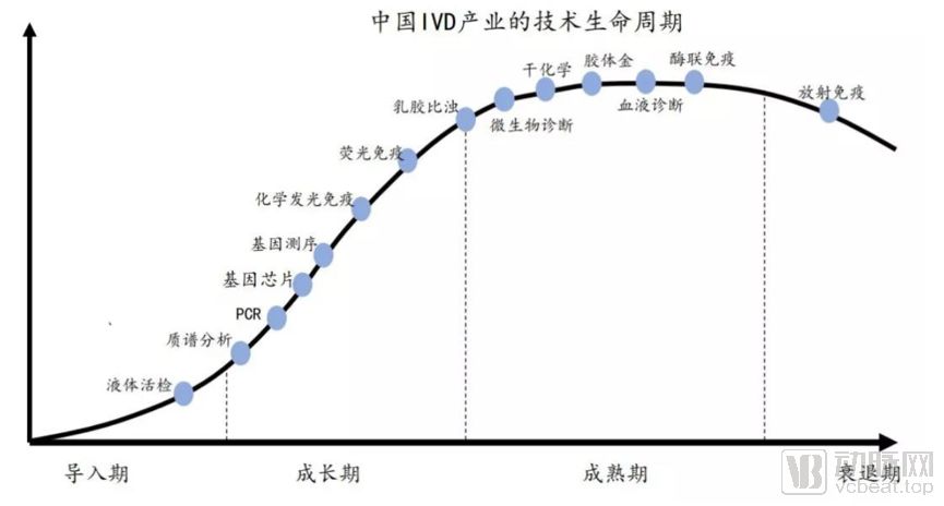 在体外诊断融资情况中,传统的生化诊断、免疫诊断类企业受到的关注不多,在资本市场先进的分子诊断企业更受认可。传统的免疫诊断技术已经进入成熟期,资本更看好处于导入期和成长期的分子诊断企业。