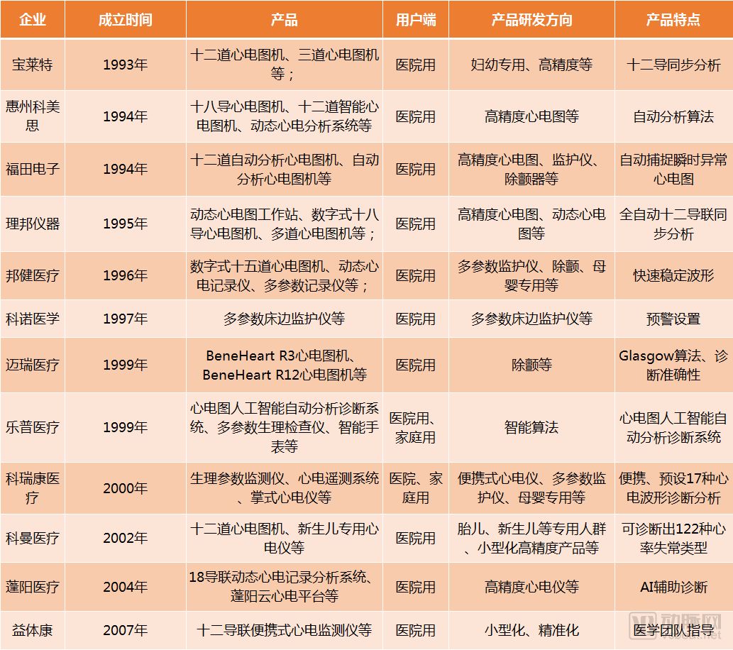 医院对心电图机的要求首先是高准确度,因此,这些企业研发的产品主要是多导联设备,且朝着诊断多病种等方向发展。
