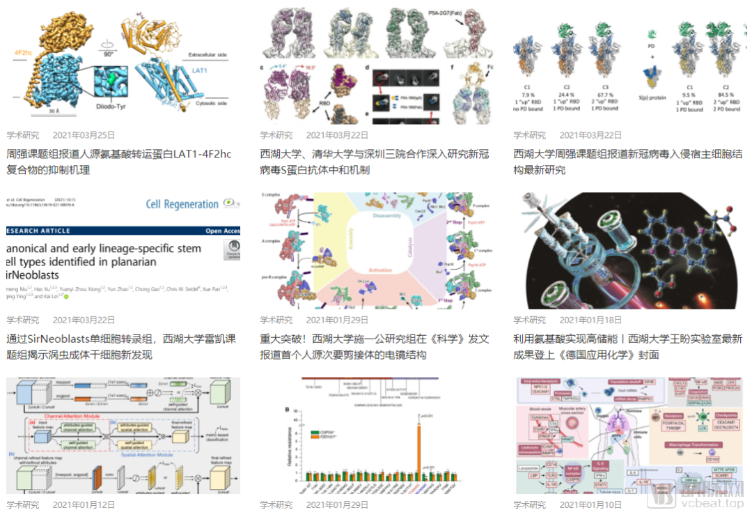 而西湖大学目前披露的学术成果来看,西湖大学的各大实验室一直专精于前沿的研究,仅在2021年今年刚过去的4个月内,西湖大学就陆续披露了10项学术研究成果,从新冠病毒S蛋白抗体抑制机制到揭示首个人源次要剪接体的电镜结构,西湖大学前沿的学术成果一直源源不断,究竟哪一个成果会转化为下一个落地实现产业化的项目,值得拭目以待。