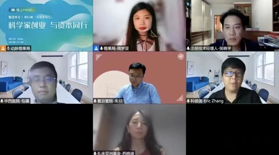 为了从科学家、科学家创业者和投资人这三个角度全面讨论这个问题,8月23日,动脉橙果局联合复旦大学管理学院 科创办公室举行了“科学家创业与资本”线上Panel,特邀复旦大学管理学院金融与财务学系副教授朱祁、华西医院副研究员 博士研究生导师包骥、科镁信副总裁张翼、礼来亚洲基金执行董事苏晓迪、注册国际技术转移经理师张晓宇,围绕《科学家创业——与资本共舞》这一话题展开圆桌讨论。
