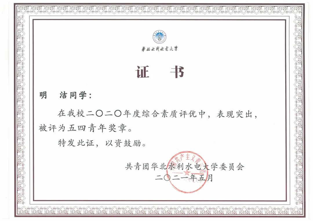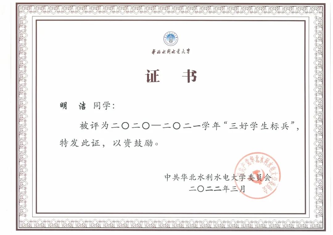 入选为华北水利水电大学青马工程第三期孟瑞鹏示范班