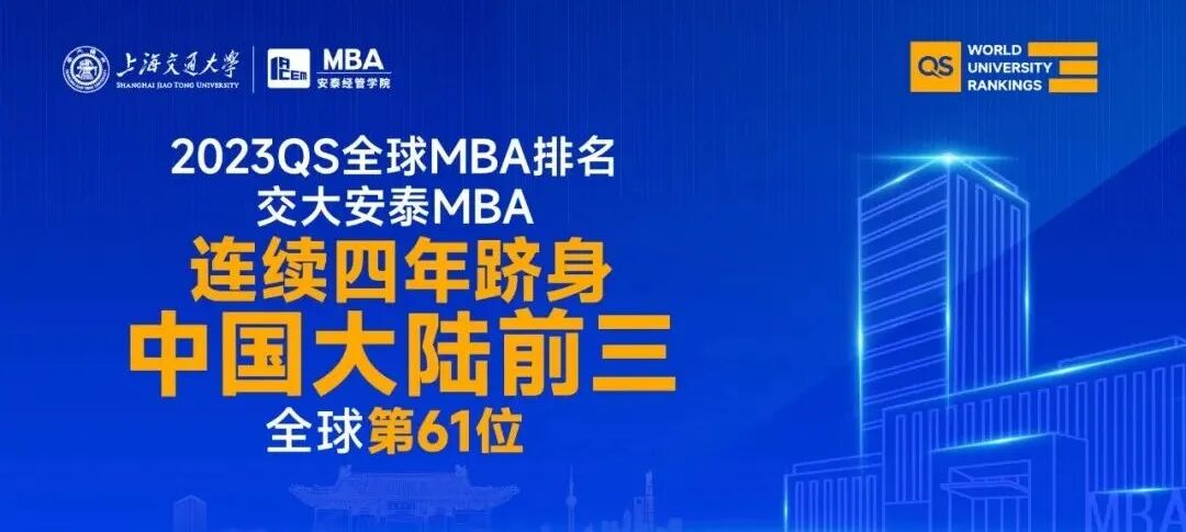 2022年英国《金融时报》(Financial Times)全球MBA排名显示,交大安泰MBA成为中国大陆本土商学院中唯一连续9年进入全球百强的MBA项目;毕业⽣三个⽉内就业率(Employment Rate)达到100%,薪资增长率(Salary Increase)达到160%,职业发展排名(Career Progress Rank)位列中国第⼀、全球第四。安泰MBA还分别在FT全球女性MBA排行榜和全球金融MBA排行榜位列第1位和第15位。此外,安泰MBA项目还在QS全球MBA项目排名中连续三年(2020-2022)位列中国大陆本土商学院首位。