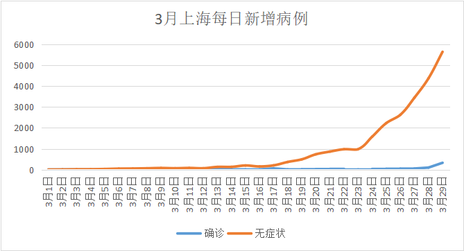 以上海市卫健委的数据为例,3月28日上海新增本土确诊病例 96 例、本土无症状感染者 4381 人,比例为 96:4381。