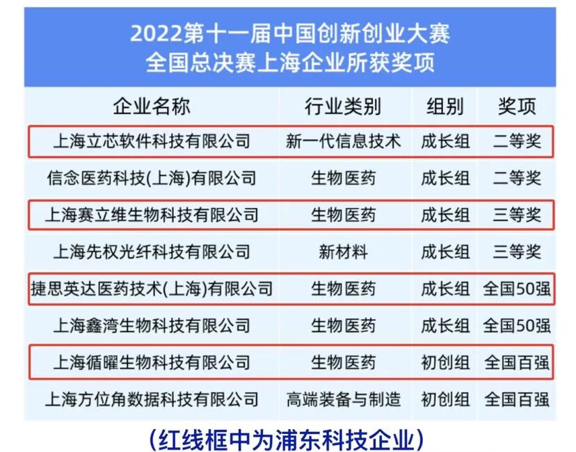 第十一届中国创新创业大赛全国总决赛近日落幕,浦东新区共有4家企业(全市8家)入围总决赛,2家企业获奖(全市4家),其中,上海立芯软件科技有限公司获得二等奖、上海赛立维生物科技有限公司获得三等奖,获奖数约占全国十分之一。上海循曜生物科技有限公司和捷思英达医药技术(上海)有限公司进入全国百强。
