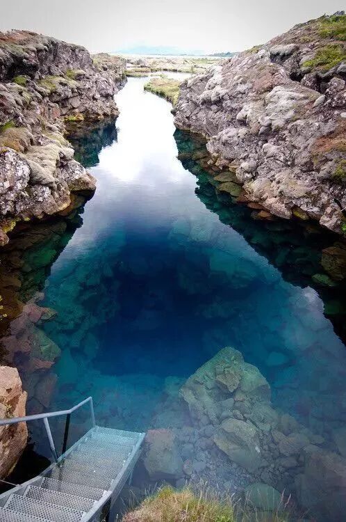 如此清澈的湖水,隐约中能看到水下的神秘巨洞