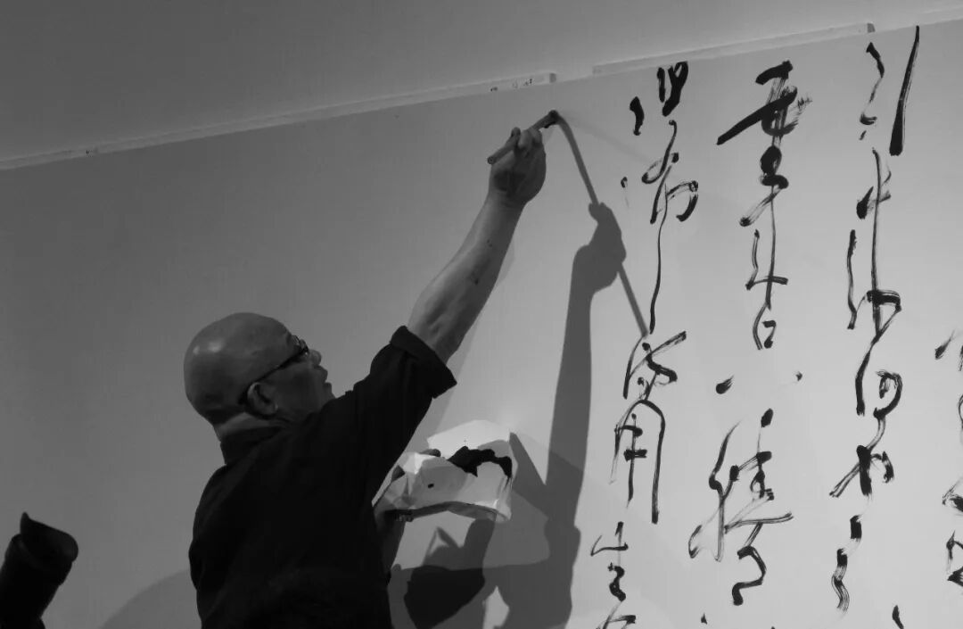 ▲ 邱振中,现场书写,视频截图