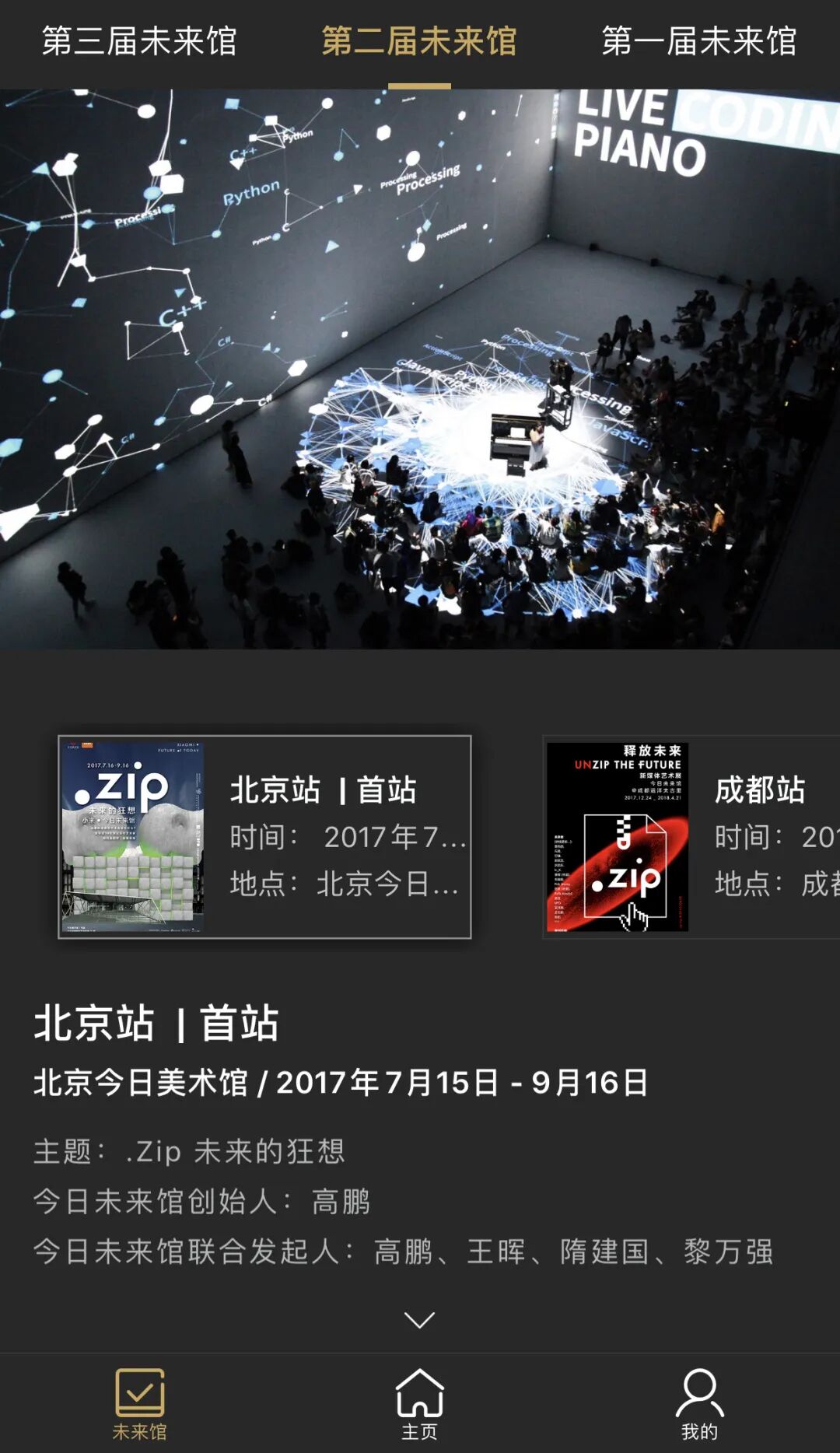 以沉浸式新媒体表演为主的2.0版本实践,即第二届未来馆“.zip未来的狂想 | 小米∙今日未来馆”;
