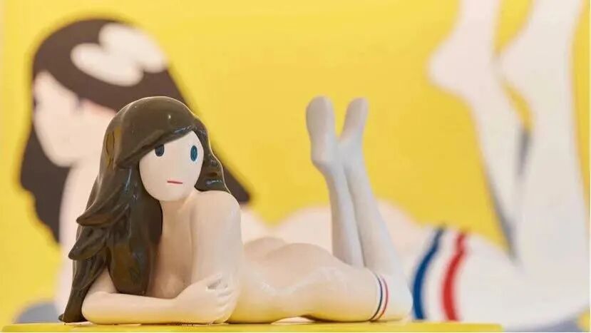 村上隆充斥潮流界的太阳花也将在画面中洋溢微笑。天野健的《Venus and Socks》裸女雕塑用最简单的色彩与柔和的线条勾勒出了在潮玩界横空出世的“宅男女神”形象,展现了天野健独特的创作风格。