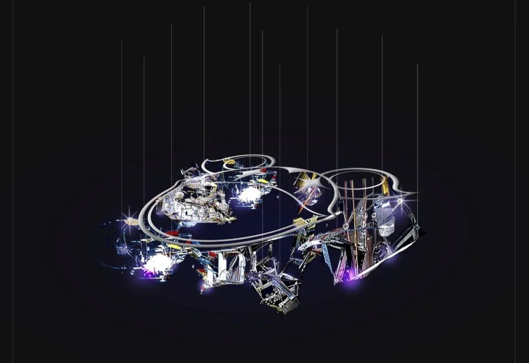林万山的大型装置作品让人仿佛一秒踏入了未来宇宙中的禅意空间,这个名为《NTDD-6.626二宙》的巨大卫星悬浮在林立的红色文字链条中间,内部布满经文,在彼此起伏的钟声中静静地向来自尘世的观者传输变幻多端的影像密语。只需踏入林万山这个仿佛脱离线性时间的科幻空间,便可感受到这位90后装置艺术家所传达的哲学思考。